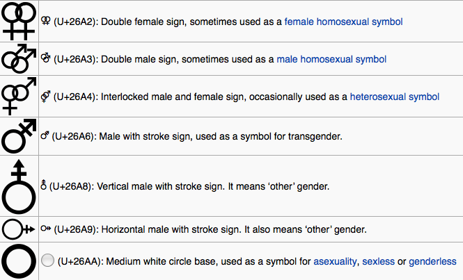 However, alchemists used these icons for something else. 11.05.2015 · during the renaissance, it became synonymous with the male gender (the symbol for venus being the female gender). 12 gender signs, female symbol, male symbol and other gender symbol variations. See male and female symbols stock video clips. ⚧ hermaphrodite / transgender / transexual / intersex, threesome, pansexual. Icon set of families, simple stick figure symbols. The name mitlan capital comes, from mictlan, a word that comes from the aztec mythology. It is a logo for an entrepreneurship through acquisition project... ⚧ hermaphrodite / transgender / transexual / intersex, threesome, pansexual.